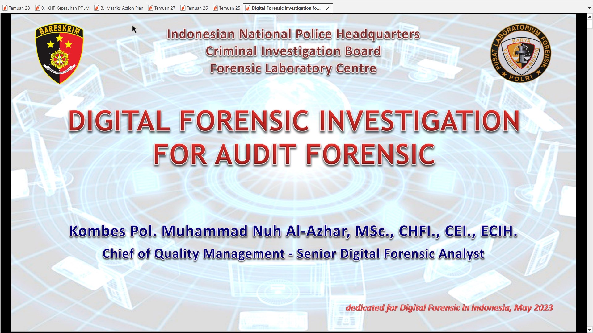 21 Feb 2025 AAFI JERUSALEM Menyelenggarakan Webinar Artificial Intelligence (AI) Forensics: Peluang, Tantangan, dan Implementasi dalam Investigasi Digital Admin Nasional Posting at 24 Februari 2025